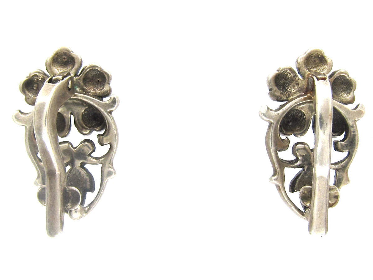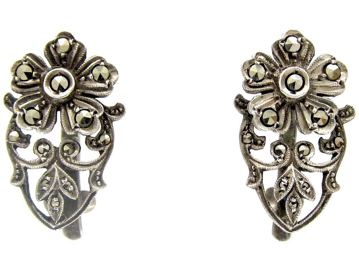 clip on flower earrings which have been set with marcasiteThe marcasite of jewellery is in fact iron pyrite as marcasite itself is too brittle alone for the durability required of a piece. This jewellery marcasite is sometimes called ‘fool’s gold’ given its heavily metallic appearance. Marcasite of this kind also offers a kind of iridescence, explaining its use as a more affordable diamond replacement that wi…. They were made circa 1920.