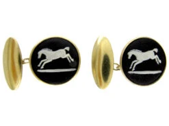 A pleasing pair of Wedgwood cufflinks with a horse motif. They are silverA metallic element which is malleable and ductile, and white in colour, making it ideal for use in jewellery. It is usually mixed with copper to improve its hardness.