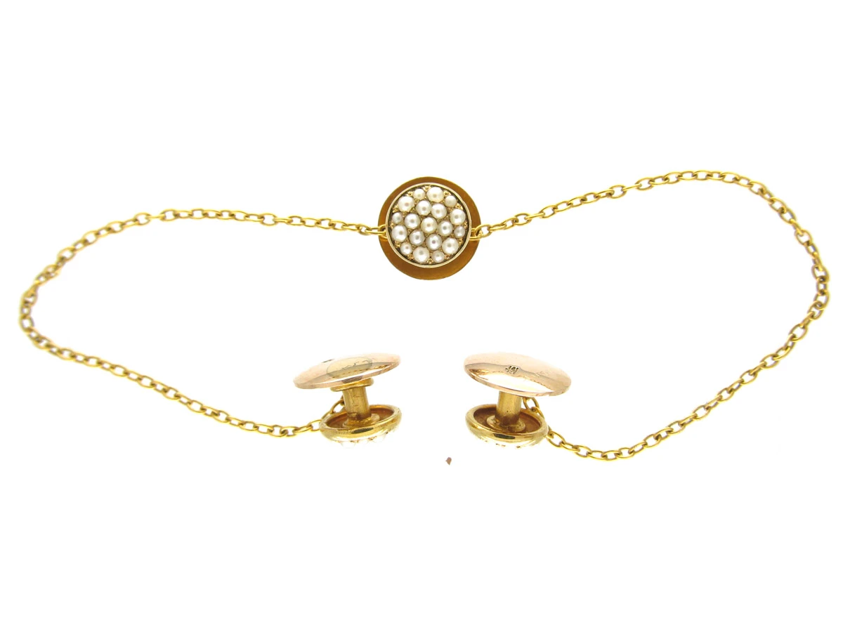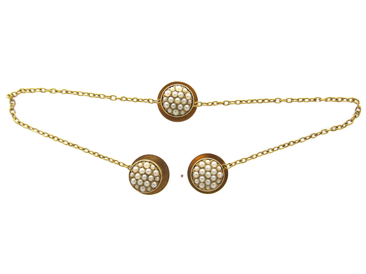 A well presented set of 18ct gold studs which were designed and retailed by Tiffany. They are pavé set with natural split pearls and in their original case.
