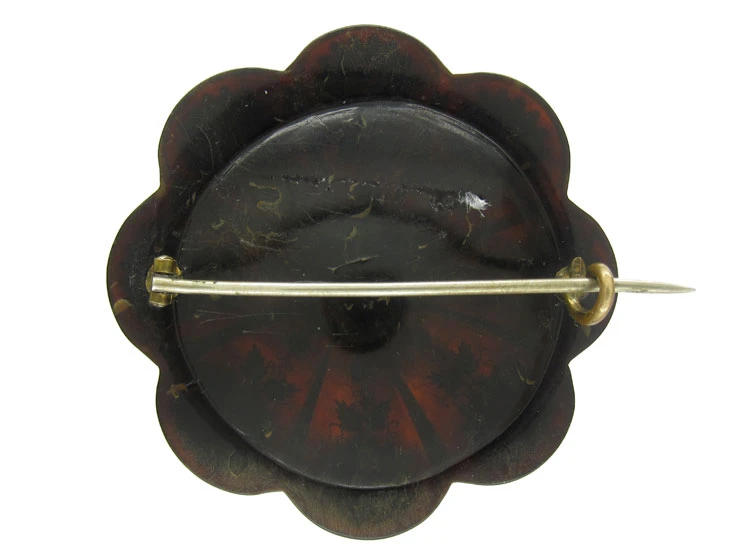 and gold. The process has been lost in the mists of time, and it would be impossible to reproduce such pieces. The tortoishelle was heated, then the pattern was pressed in. Brooches such as this one were worn as mourningRings made especially to mark the death of a loved one. Often called ‘memento mori’ rings. Rare examples survive intact and are highly collectable. jewellery. After Prince Albert died Queen Victoria went into deep mourning and the country followed her. At first pieces of jewellery were all black and sombre such as jet, but as the years rolled on the jewellers took more liberties and added decoration. This example is from about 1890.