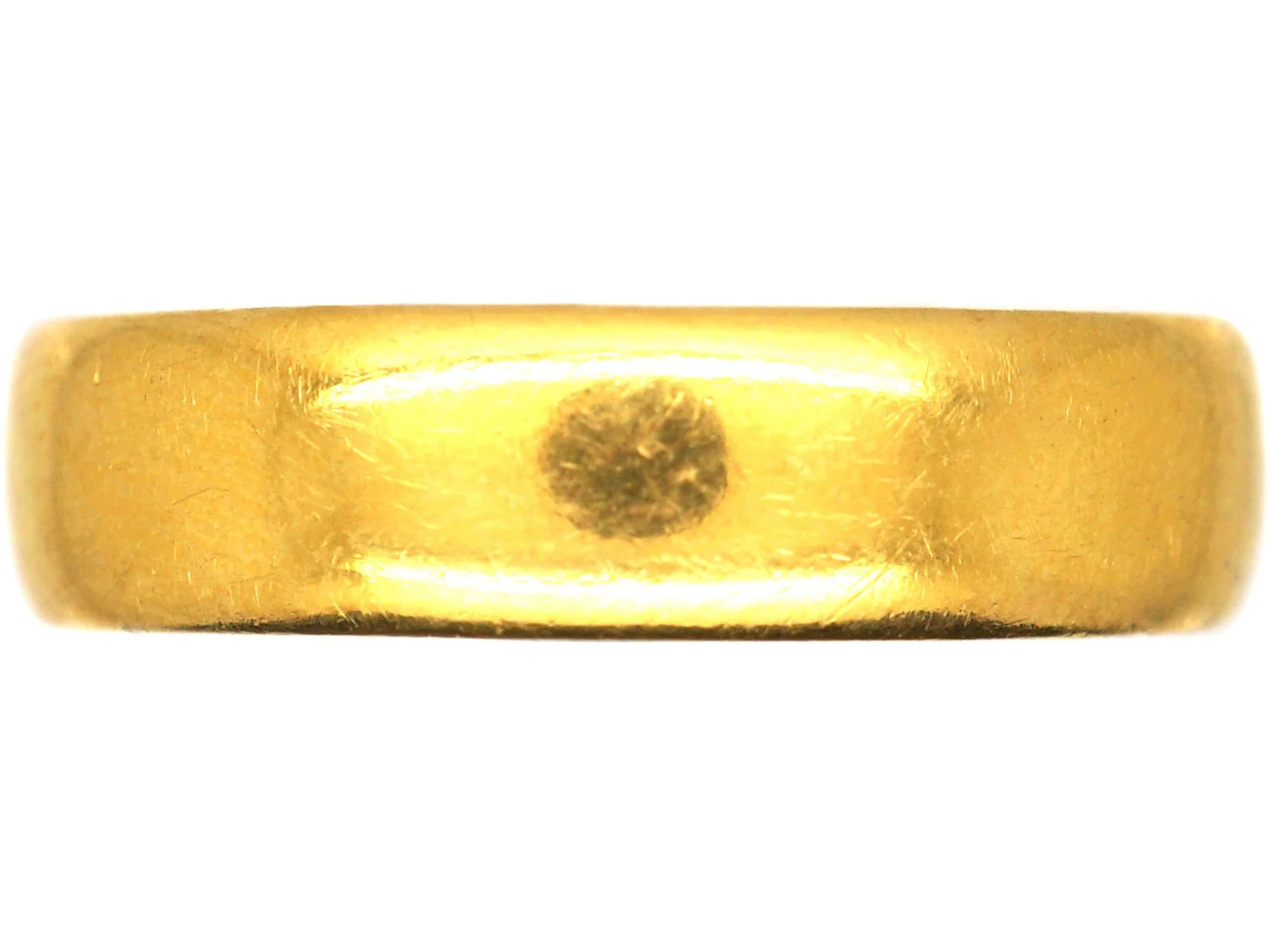 A great looking wide wedding bandA type of ring which is an equal width all the way round. They are traditionally used for wedding rings.