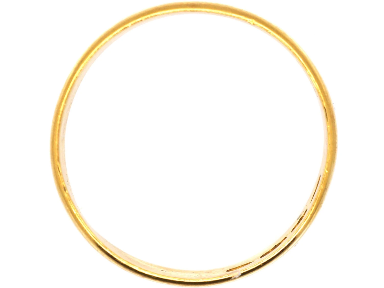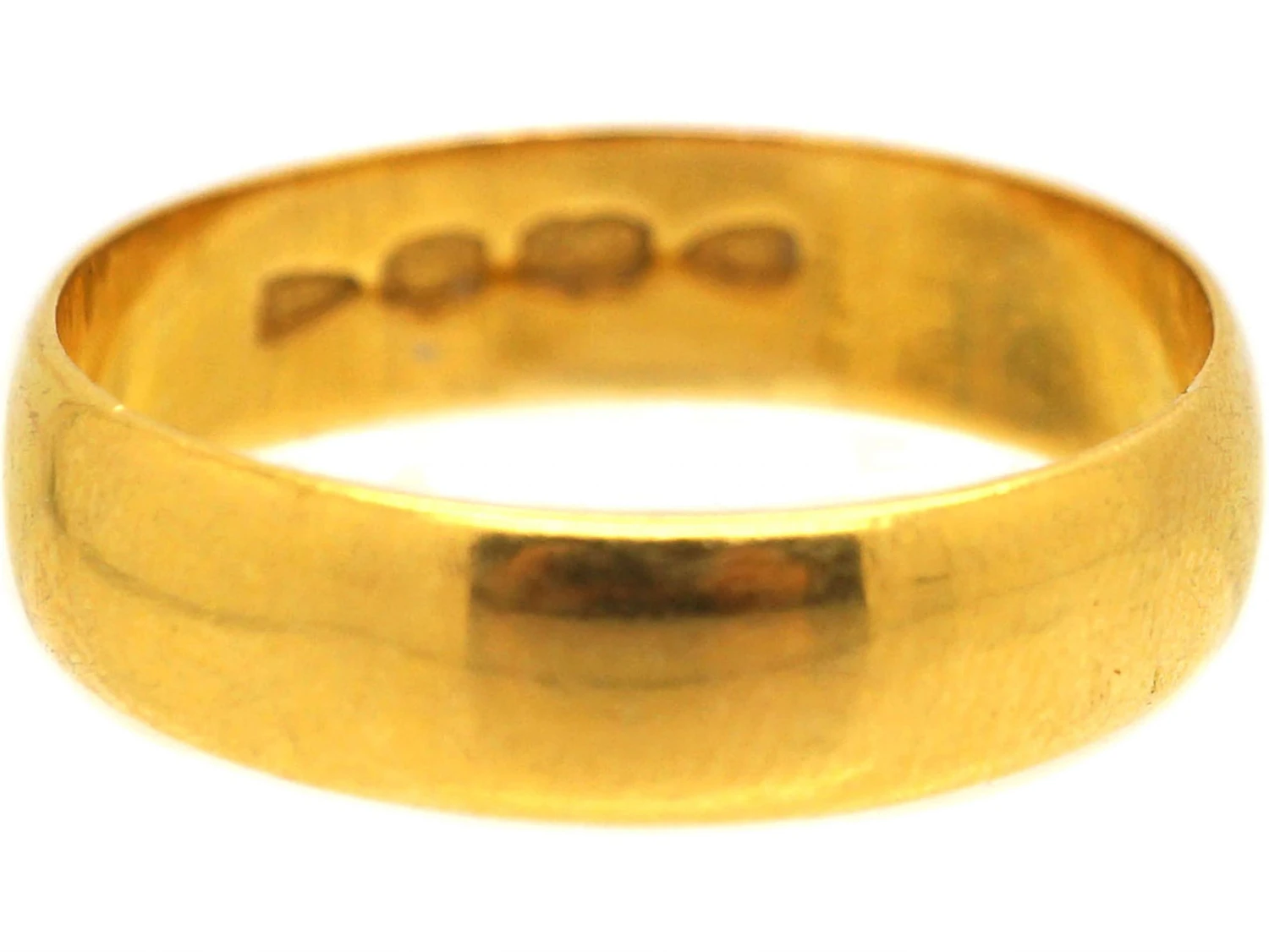 that was made in London in 1894. It is 22ct91.6% pure gold (or 916 parts pure gold and 84 parts other metals) gold and a beautiful buttery yellow colour that is hard to reproduce nowadays. It is an incredibly comfortable ring to wear.