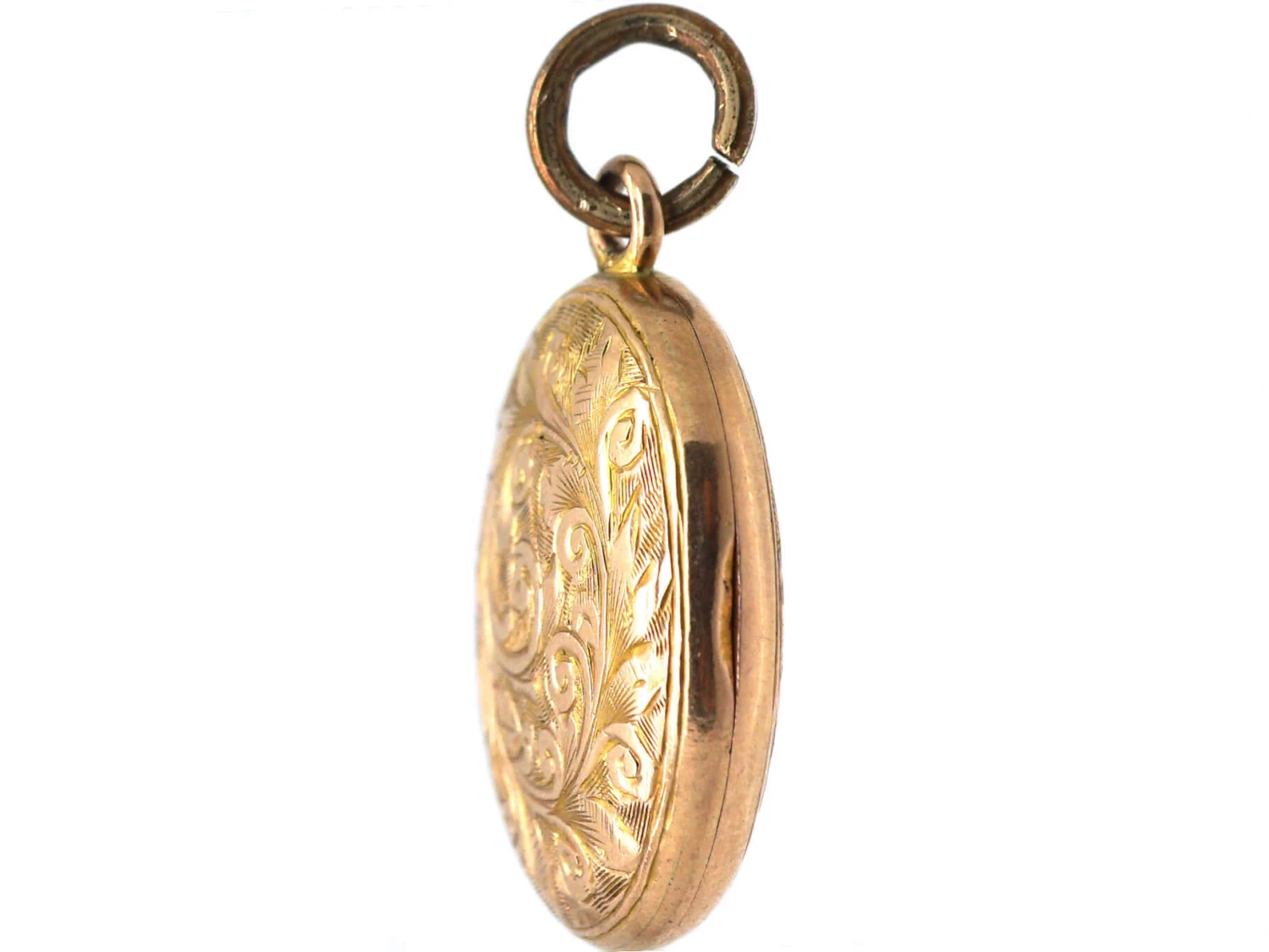 A sweet 9ct37.5% pure gold (or 375 parts pure gold and 625 parts other metals) gold back and front locket that was made circa 1880-1900. It has been engraved with a leafy scroll design and the name âAliceâ within a ribbon motif on the back. It opens to reveal two compartments for photographs.