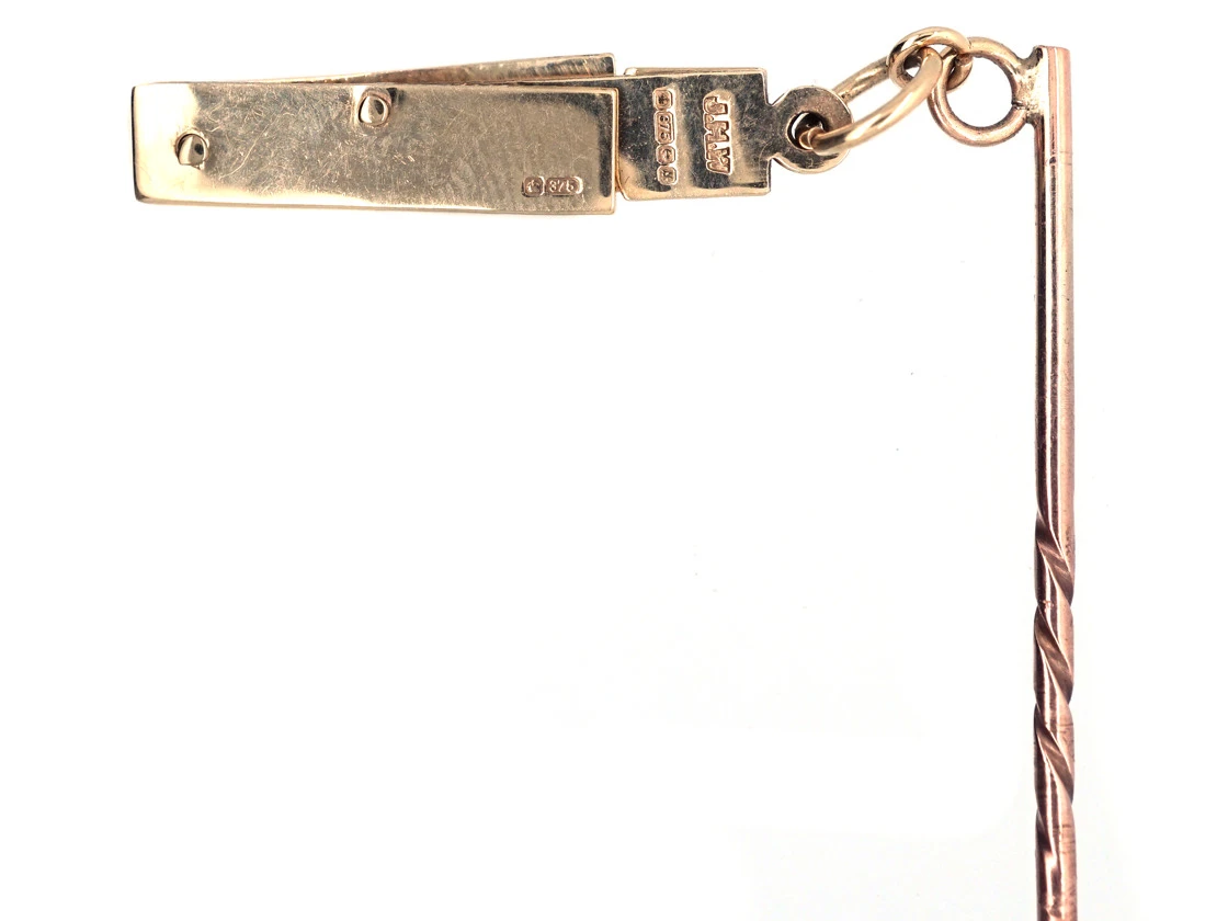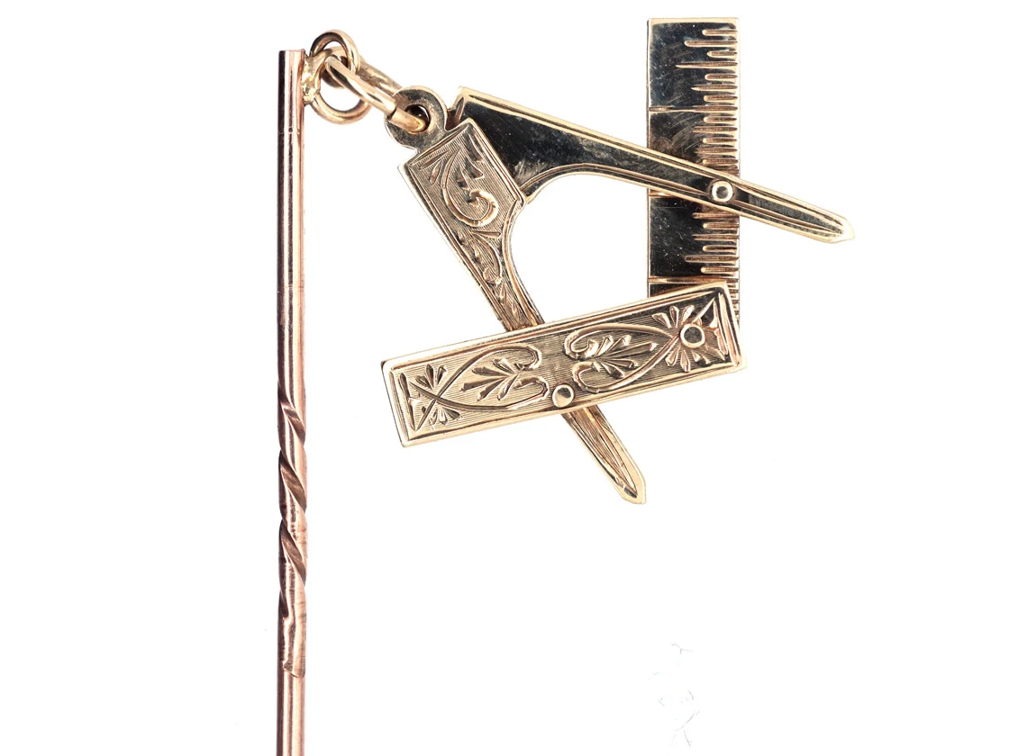 An unusual Masonic 9ct37.5% pure gold (or 375 parts pure gold and 625 parts other metals) gold stickpin that looks like a narrow rectangular locket but slides open to reveal dividers.