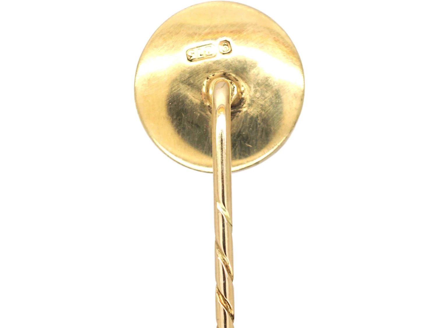 I love reverse intaglio crystal pieces because I find it so hard to believe that these items were carved by hand. This example is of a spaniel created with huge attention to detail. The background is mother of pearl and the mount is 9ct gold.