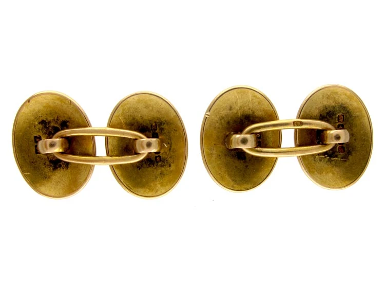 Typical nice quality pair of VictorianJewellery made in the the Victorian era (1839-1901). cufflinks, well engraved with the garter, and well markedA small hallmark or punchmark either on the inside or outside of the shank which indicates the metal is platinum, gold or silver. If the metal is gold, it could also indicate the carat, e.g. 18 carat gold..