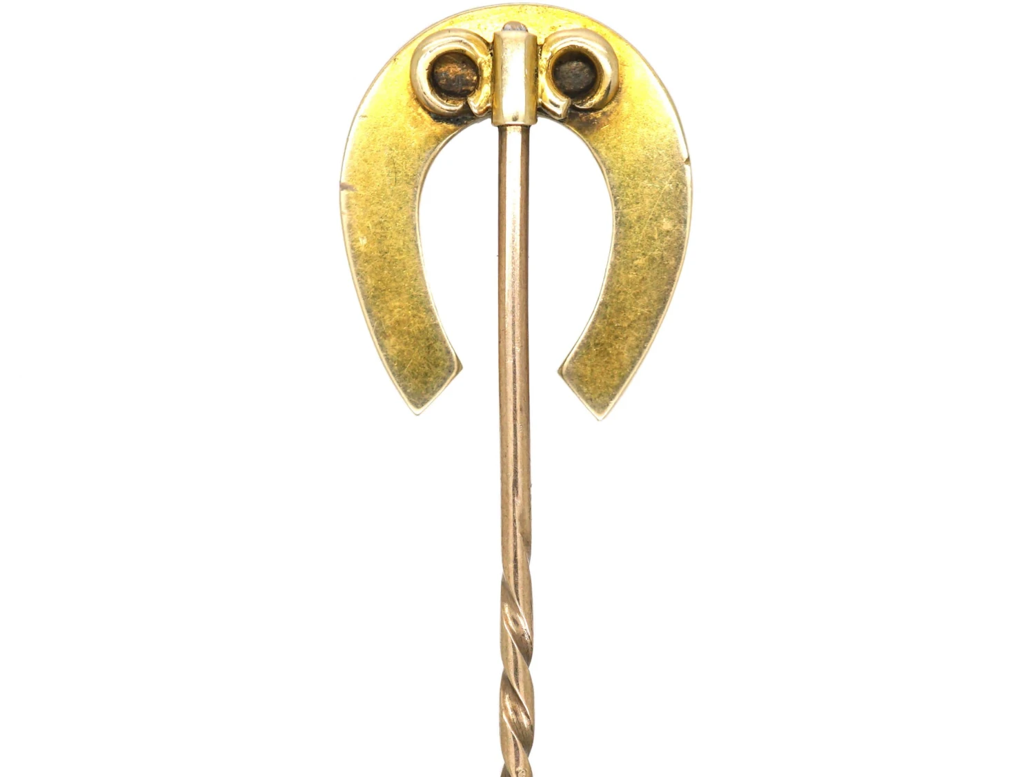 A good looking tie pin that was made circa 1860-1880. It is a lucky horseshoe and has been set with graduated naturalA natural stone is called such because it has not been subjected to any treatments. pearls. A striking addition to a tie or lapel. All our tie pins come with a stopper at the end of the pin.